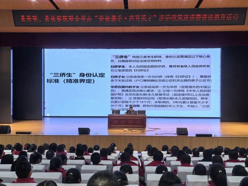 活动中,县侨联主席姜光男对涉侨相关政策进行了系统解读,结合实例阐述了侨胞权益保障相关法律法规与服务举措。对“三侨生”的身份认定及相关教育优惠与照顾政策进行了详细介绍,帮助师生清晰了解国家对于涉侨学生的具体关怀与支持措施。随后,县检察院干部宗凯欣围绕青少年身心特点开展专题普法宣讲,通过生动案例讲解预防犯罪与自我保护等法律知识,引导学生增强法治观念,学会运用法律维护自身权益。宣讲中,结合《中华人民共和国归侨侨眷权益保护法》等法律法规,针对涉侨学生可能面临的情况,讲解了其在教育、财产、人身安全等方面的合法权益,以及寻求法律保护的途径,为在场的涉侨学生进行了一次有针对性的普法教育。