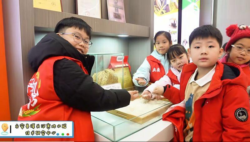 在源升河寒地水稻技术研究中心,孩子们了解了水稻的种植历史和生长过程,回顾袁隆平院士与庆安的黑土情缘,引导孩子们知农事、学农耕、惜农食。