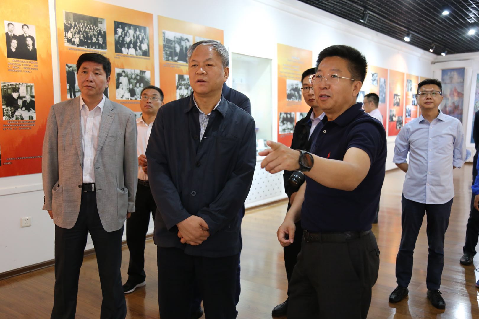 参观过程中,李仰哲与陪同人员一边听取着讲解员的讲解一边频频点头,不时驻足在展柜展板前,与讲解员深入交流馆内展出的藏品及展板上纪录的旅俄华侨相关事迹背后的故事,还时常讨论起同时期的历史与历史上的领航人故事。