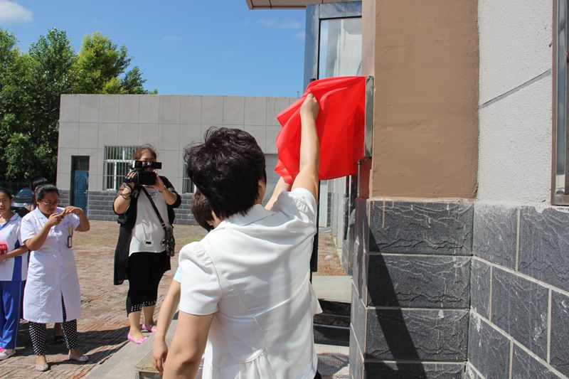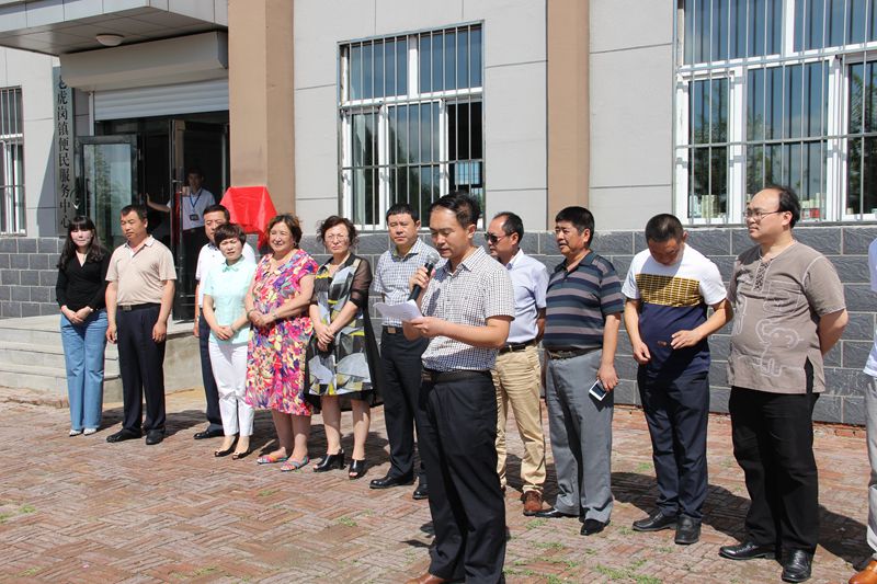 (图为安达市老虎岗镇党委副书记杨永春主持揭牌仪式)